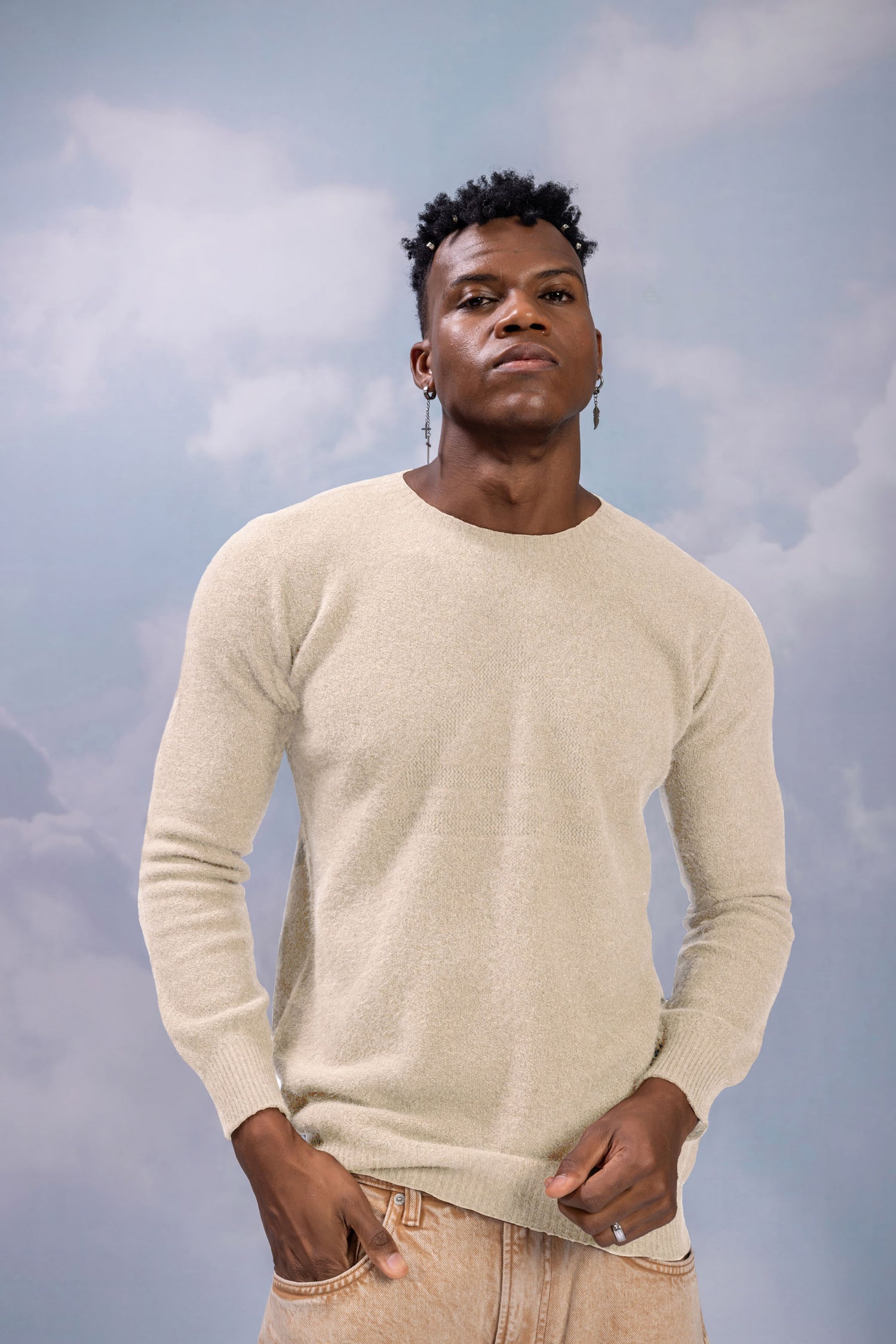 The sweater is crafted from a premium tri-blend yarn:65% ZQ Fine Merino Wool – certified ethical wool that’s ultra-soft, breathable, and naturally regulates temperature.25% Brushtail Possum Down – a hollow-fiber insulation that offers warmth without weight, trapping heat for exceptional thermal performance.10% Mulberry Silk – adds a smooth sheen, strength, and luxurious softness to the blend.This rare composition delivers lightweight warmth, indulgent softness, and lasting durability.